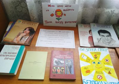 В бібліотеці організована виставка з теми: “Охорона праці та безпека життєдіяльності”.