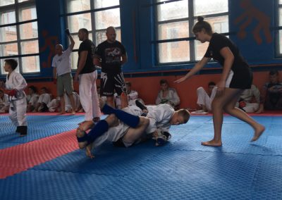 Всього беруть участь у зборах 58 учасників, серед яких і вихованці ДЮСШ “Олімп”, зокрема Даніель Преображенко, який в цьому році став чемпіоном Європи. З найближчих міст – шосткинські спортсмени, чемпіонка Європи Валерія Нешкова та бронзовий призер Чемпіонату Європи Данило Гордієнко. Вражає тренерський склад, присутні на зборах вісім найкращих тренерів країни, серед них і старший тренер збірної України з джиу-джитсу Ігор Юхименко, другий тренер збірної Володимир Скрипнюк та третій тренер Анатолій Красножон.