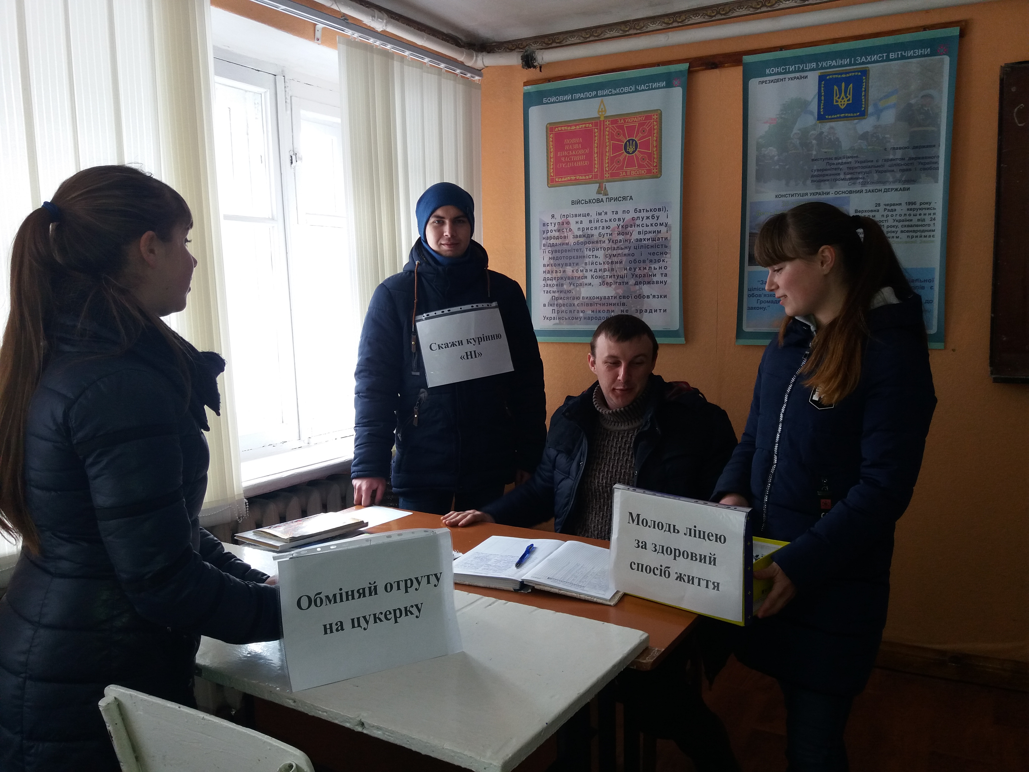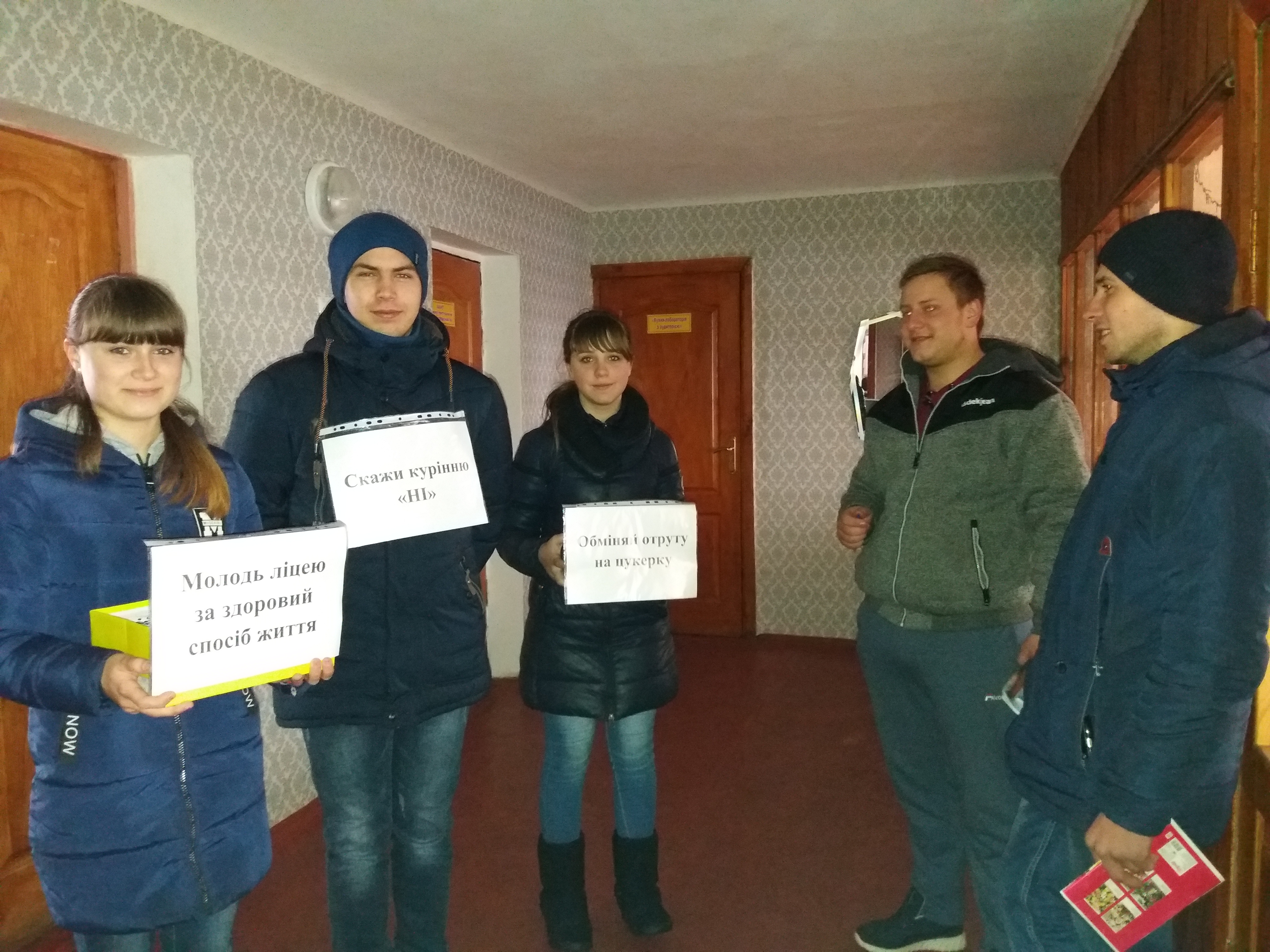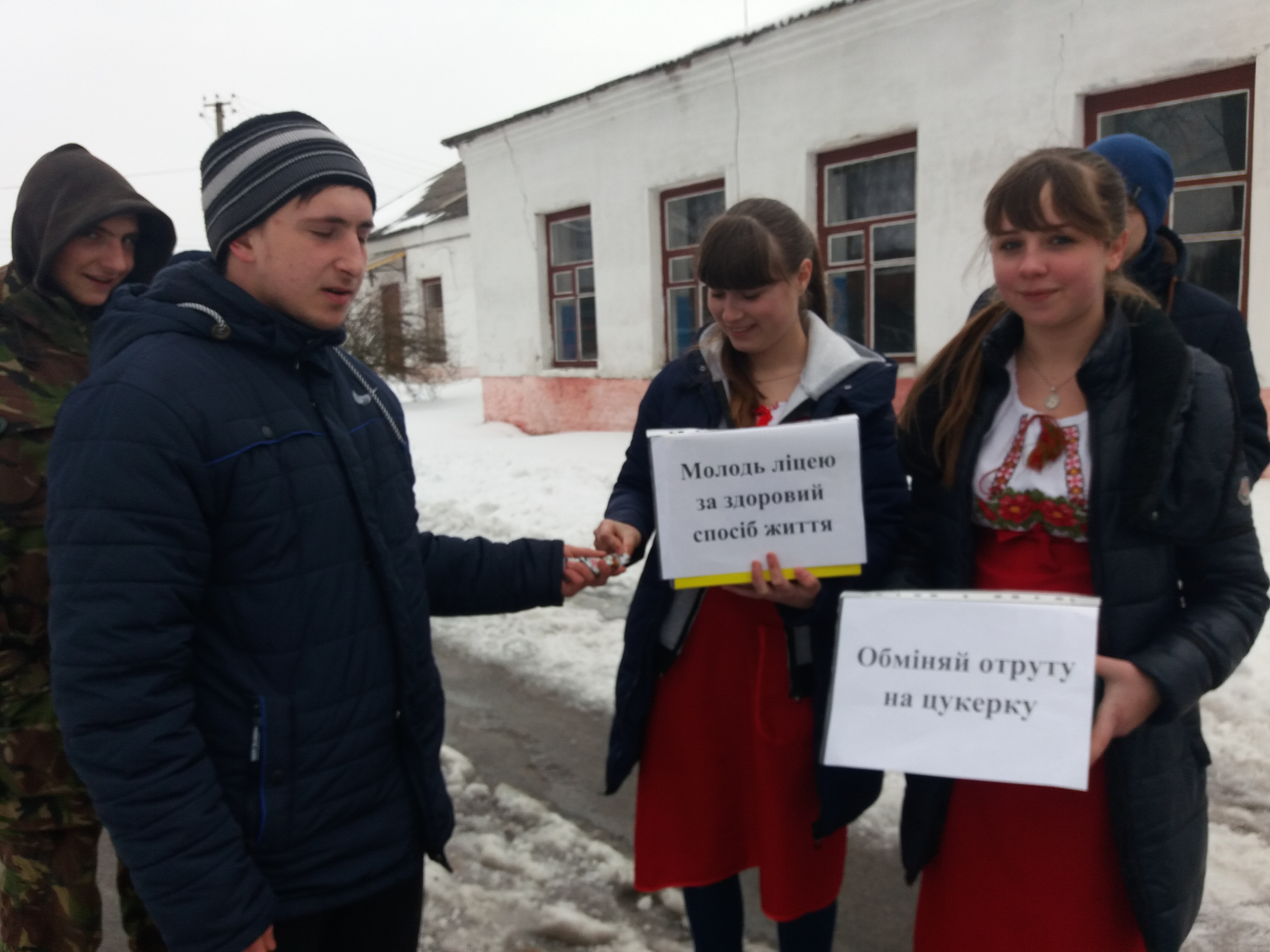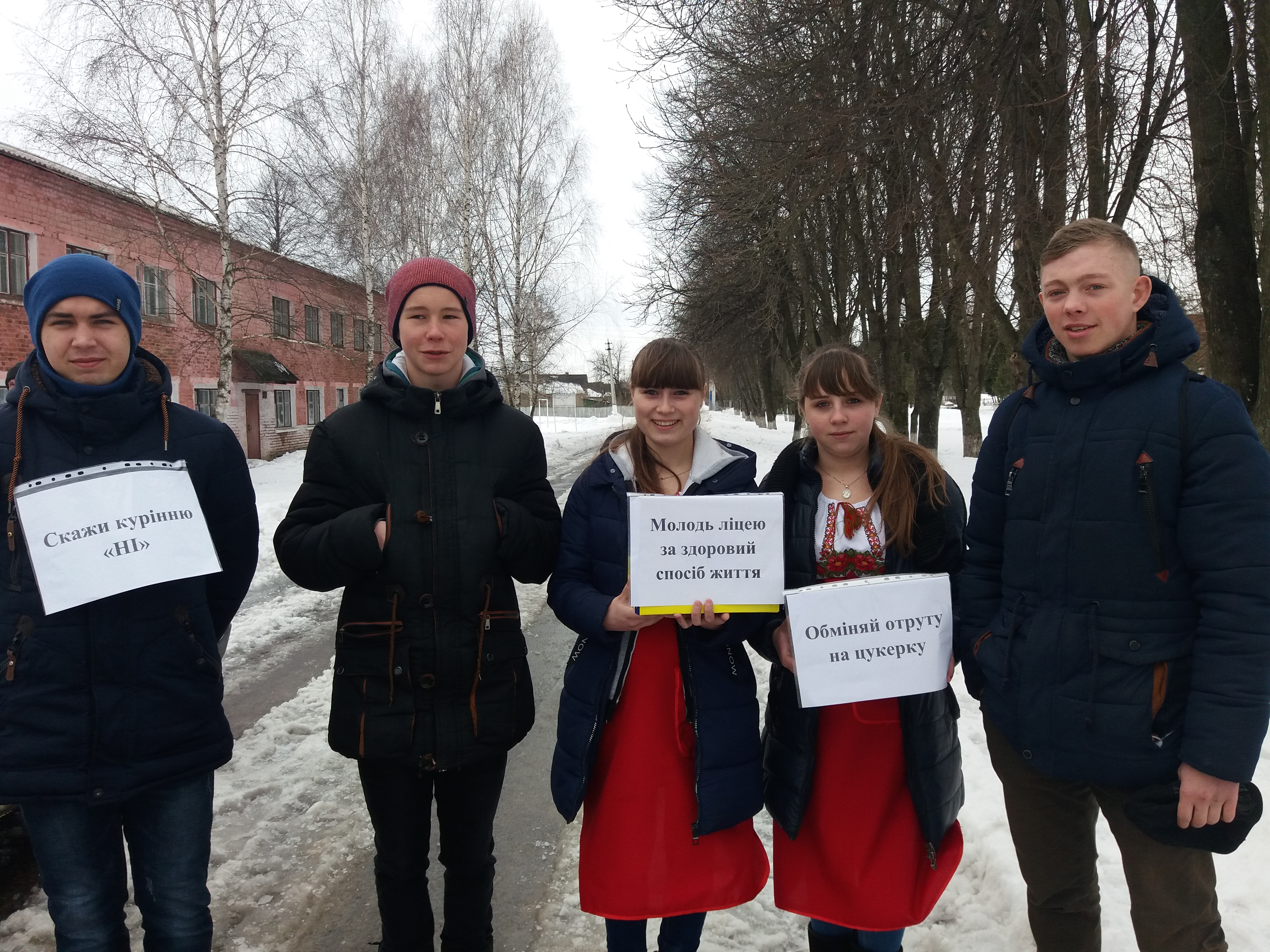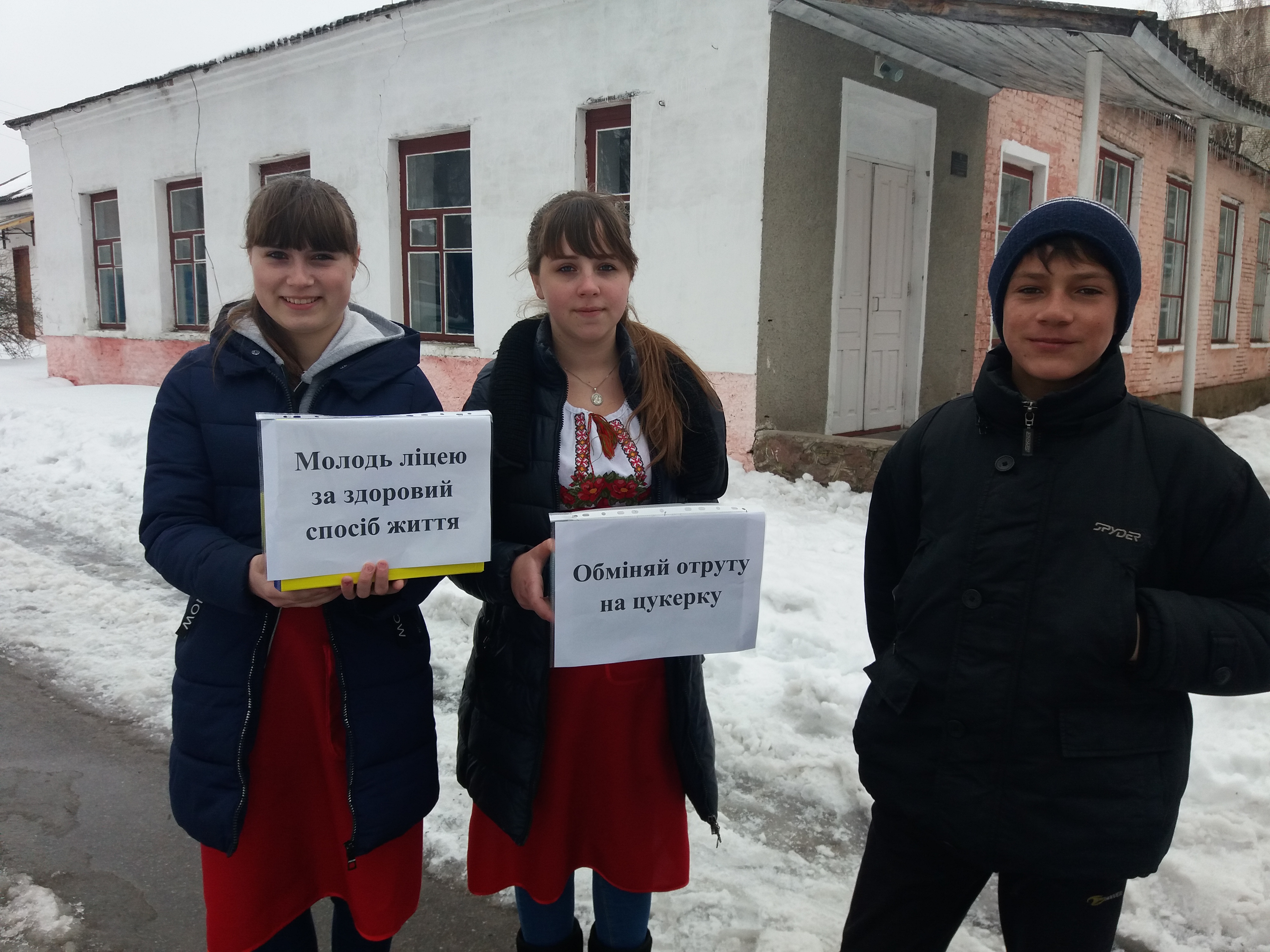 З метою популяризації здорового способу життя, відмови від тютюнопаління та в рамках реалізації проекту «Соціально-педагогічна профілактика тютюнопаління» учнівське самоврядування ліцею спільно із соціальним педагогом організували та провели 14.03.2018 року соціально-профілактичну акцію «Обміняй цигарку на цукерку».