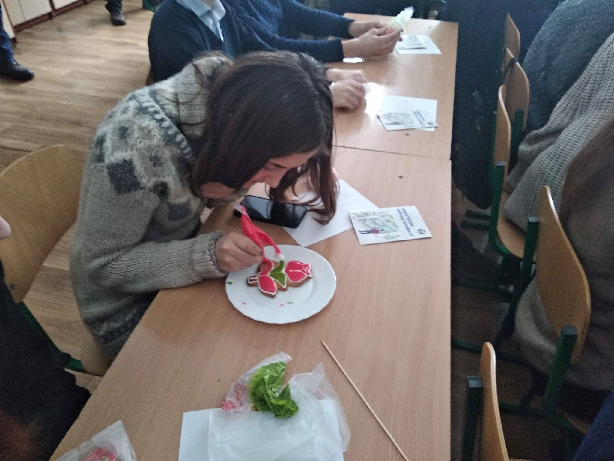 Учасники заходу вправно та з великим завзяттям розписують пряники глазуррю й айсингом. Майстер виробничого навчання Доміна О.П. надав можливість учням відчути себе електромонтерами, виконуючи операції з провідниковими виробами та з’єднувальною апаратурою.