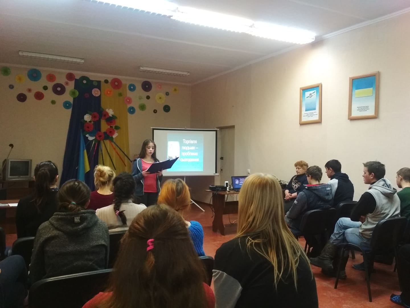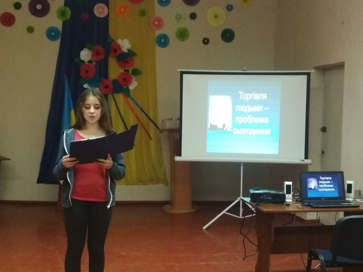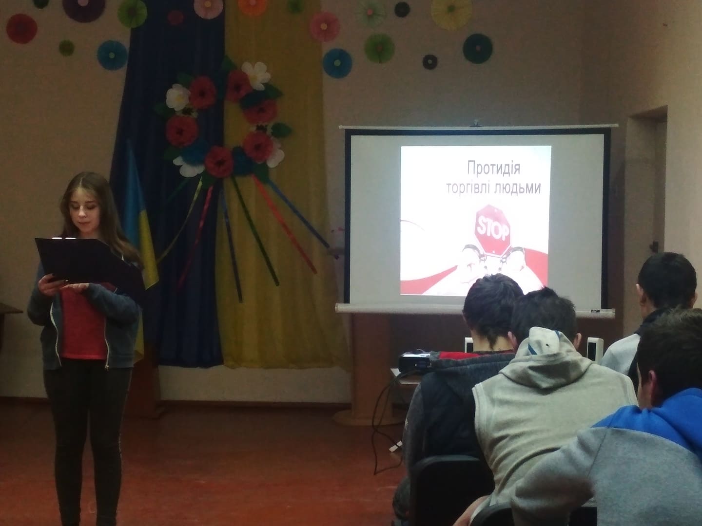 Під час виступу учнів було поінформовано про форми та причини торгівлі, етапи торгівлі людьми, наведено типові приклади рекламних оголошень, які дають привід замислитися.