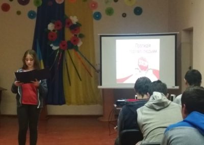 Учні з цікавістю передивились відеозапис, в якому була висвітлена проблема торгівлі людьми в Україні. І на завершення виступу їм було запропоновано телефони Національної гарячої лінії з протидії торгівлі людьми та Управління боротьби з торгівлею людьми.