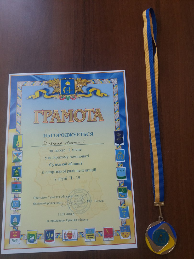 У період з 8-11 березня 2018 року на базі ДПТНЗ “Реутинський професійний аграрний ліцей” проходив відкритий чемпіонат Сумської області зі спортивної радіопеленгації. За підсумками 4 днів наш учень Поповченко Анатолій (майстер спорту України зі спортивної радіопеленгації) зайняв І місце у групі Ч-19. Щиро вітаємо переможця! Бажаємо успіхів у спортивному майбутньому.