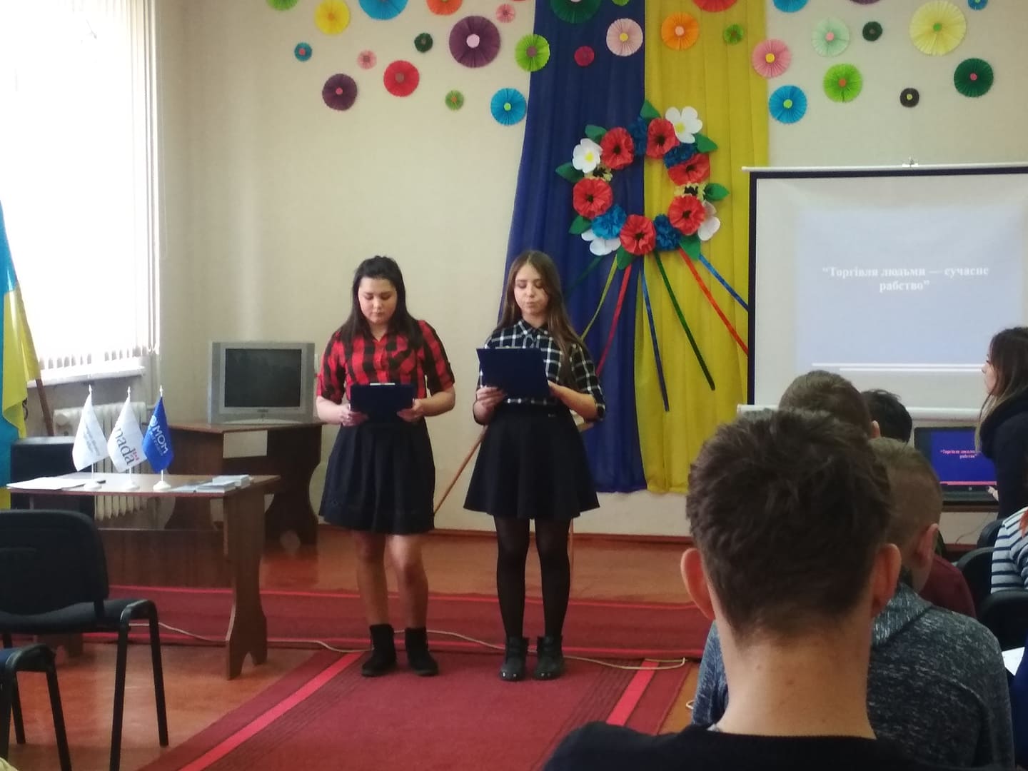 У рамках проекту громадської організації “Соціальна Організація Студентів” та Міжнародної організації з міграції “Відповідальна Сумщина без торгівлі людьми!” було проведено тренінги з протидії торгівлі людьми та здійснено навчання учнів у ДПТНЗ “Реутинський професійний аграрний ліцей”