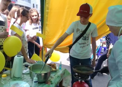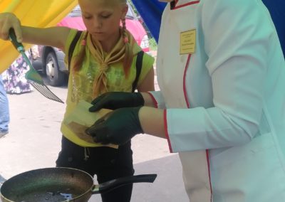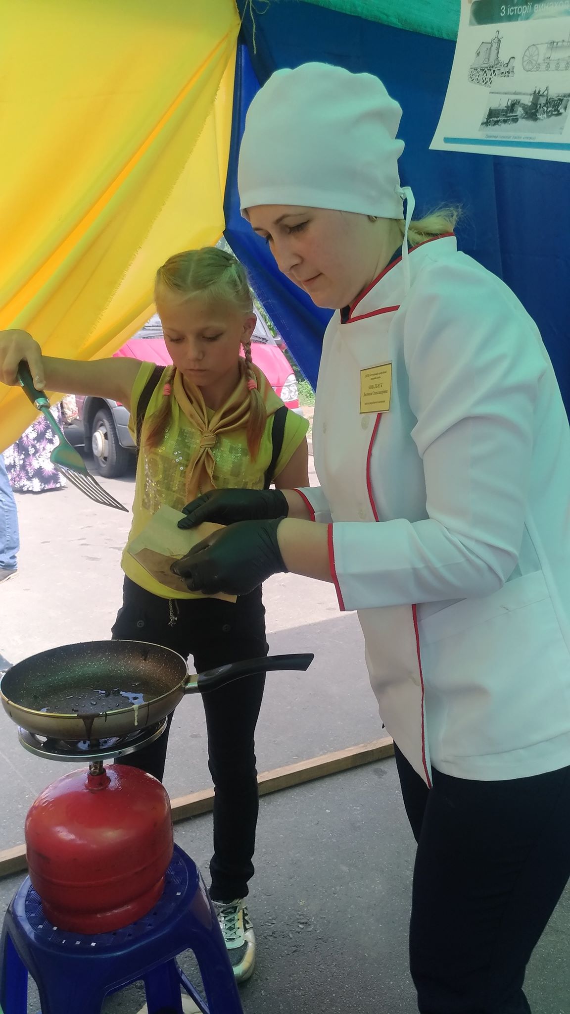 На ярмарку професій ДПТНЗ «Реутинський професійний аграрний ліцей» анонсував професію майбутнього – кухарський арт-дизайн, який був продемонстрований у приготуванні панкейків.Краще один раз побачити, ніж сто разів почути! А ще краще – спробувати зробити власноруч! Переглянувши майстер-клас, старшокласники спробували відтворити власноруч дії професіоналів і переконатися, що робітничі професії в умовах сучасності є творчими і креативними. Так майстер виробничого навчання Л.Ковальчук показала, як випікати та оздоблюватипанкейки (американські млинці). Вишукувалася величезна черга з учнів, які виявили бажання показати свою майстерність. Готували млинці, прикрашали шоколадом, чорницею, згущеним молоком, а потім куштували свої вироби. Відбувалося справжнє дійство. Захопила присутніх цікава розповідь майстра виробничого навчання О. Доміни про мотоблок, зроблений власноруч. Цей технічний прилад застосовується для обробки rрунту. Обличчя радісні, усі захоплені новизною. Кожен учень на згадку про ліцей отримав повітряну кульку з логотипом закладу та прапорець з профорієнтаційною інформацією.