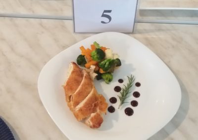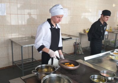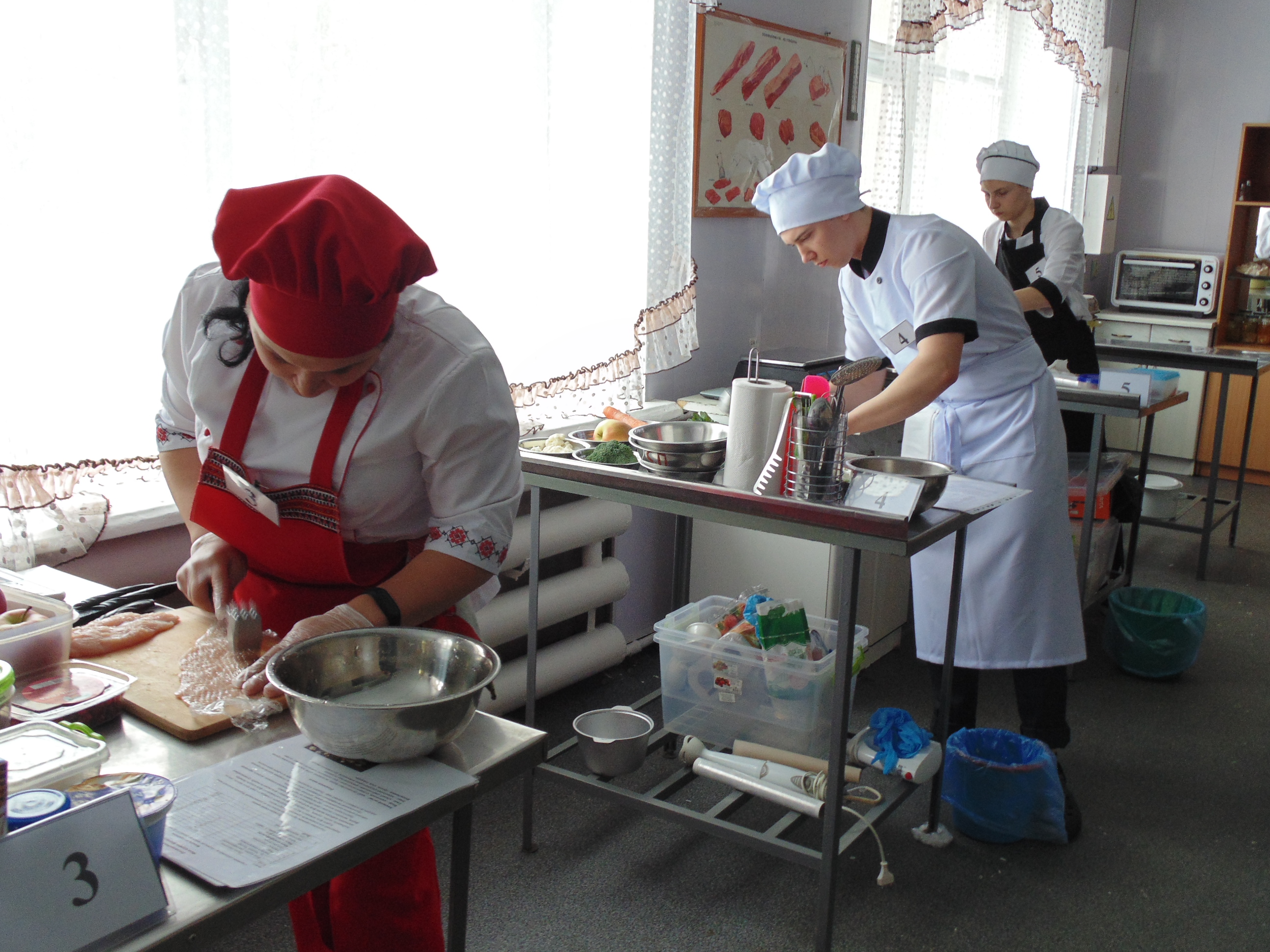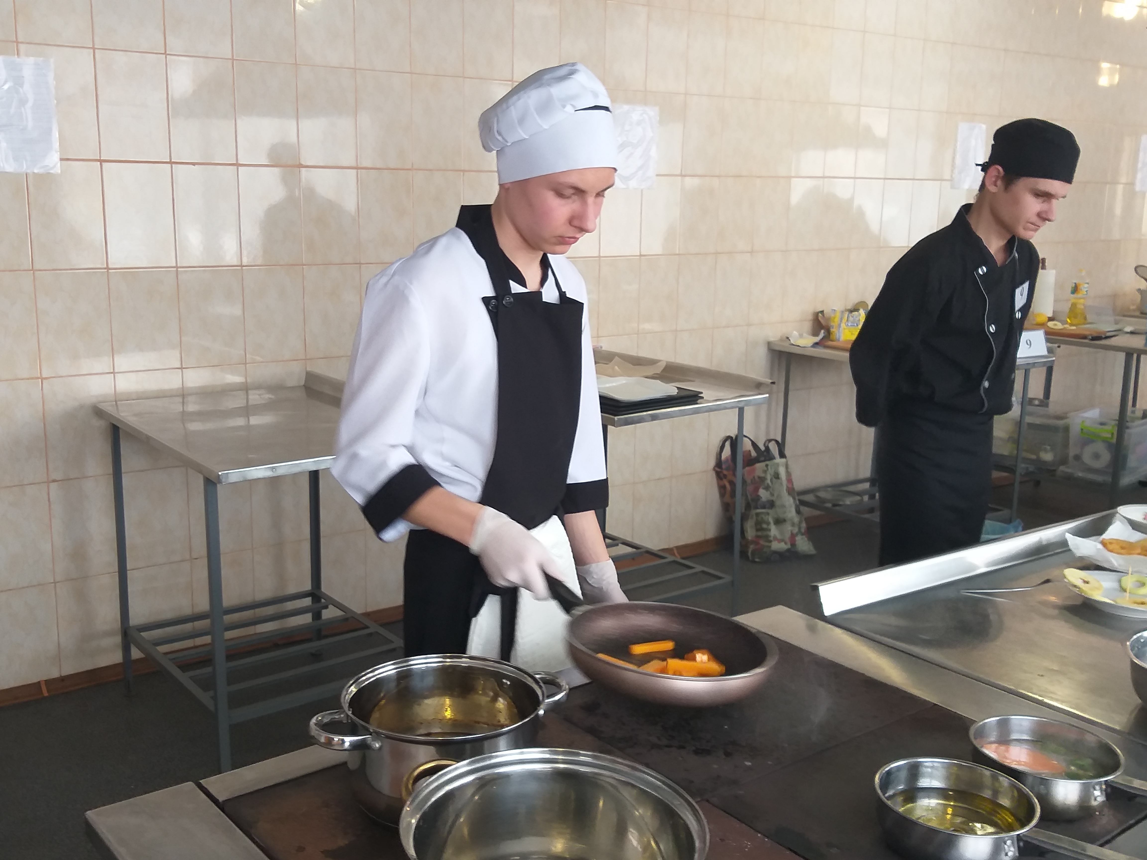 Професійну майстерність, творчість, оригінальність, винахідливість продемонструв учасник від нашого навчального закладу з професії «Кухар» під час приготування основної страви «Куряче філе фаршироване» (соусу за власним рецептом, складного гарніру) та «Яблук смажених у тісті». Протягом 3 годин Евгеній працював над приготуванням страв, демонструючі свою професійну майстерність. Критерії оцінювання включали в себе не тільки оцінку смакових якостей страв, а й підготовку робочого місця, дотримання технології приготування, дотримання правил безпечних умов праці, норм санітарії та гігієни, оформлення страв, використання новітніх технологій в приготуванні страв.