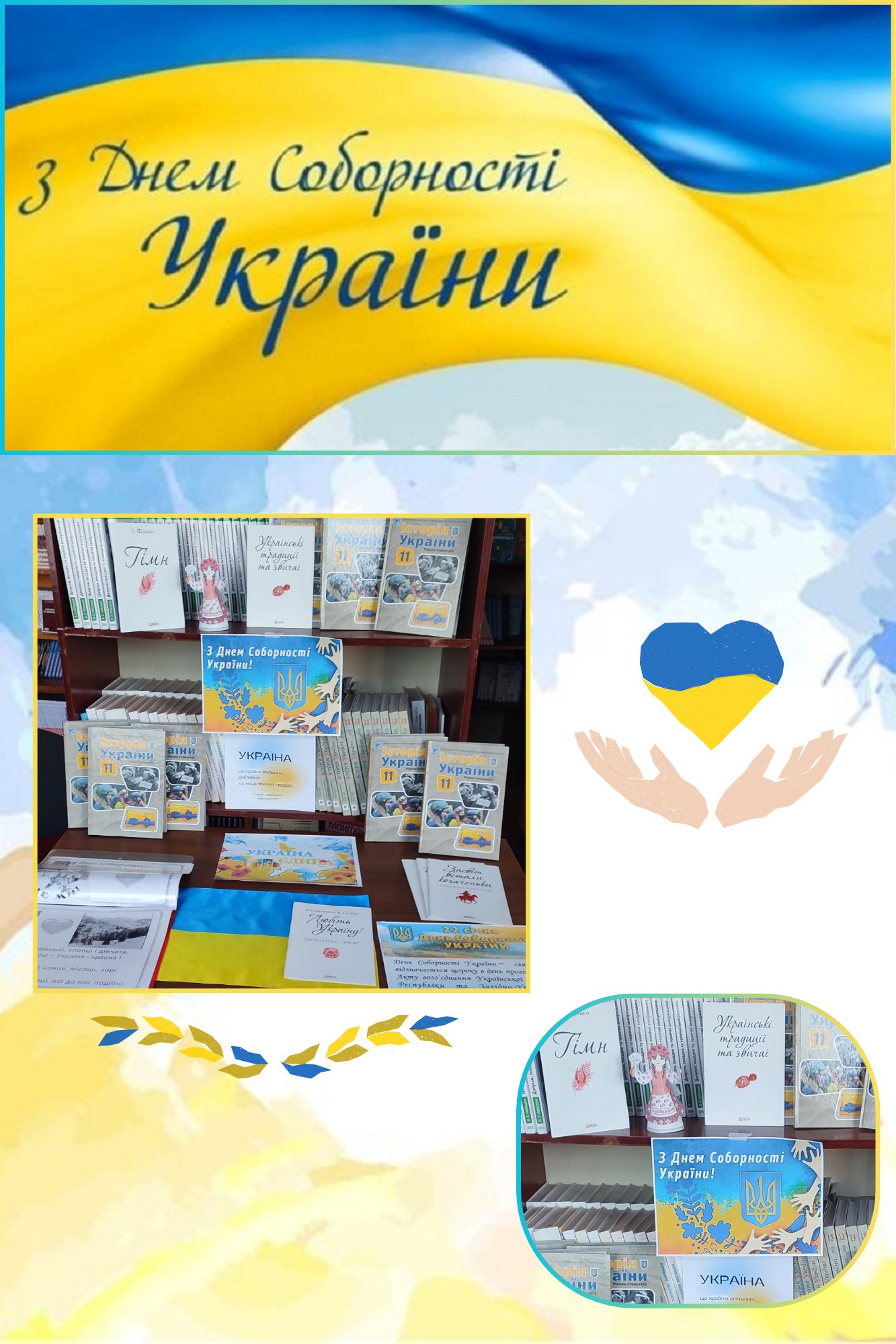 22 січня — День Соборності України Січ 22, 2026 | Новини 22 січня — День Соборності України День, що символізує єдність українських земель, силу національного духу та спільність історичної долі. Соборність — це усвідомлення нашої відповідальності за цілісність держави, її незалежність і майбутнє. Книжкова виставка висвітлює події Акта Злуки 1919 року, шлях українського державотворення та ідею єдності, актуальну й сьогодні.