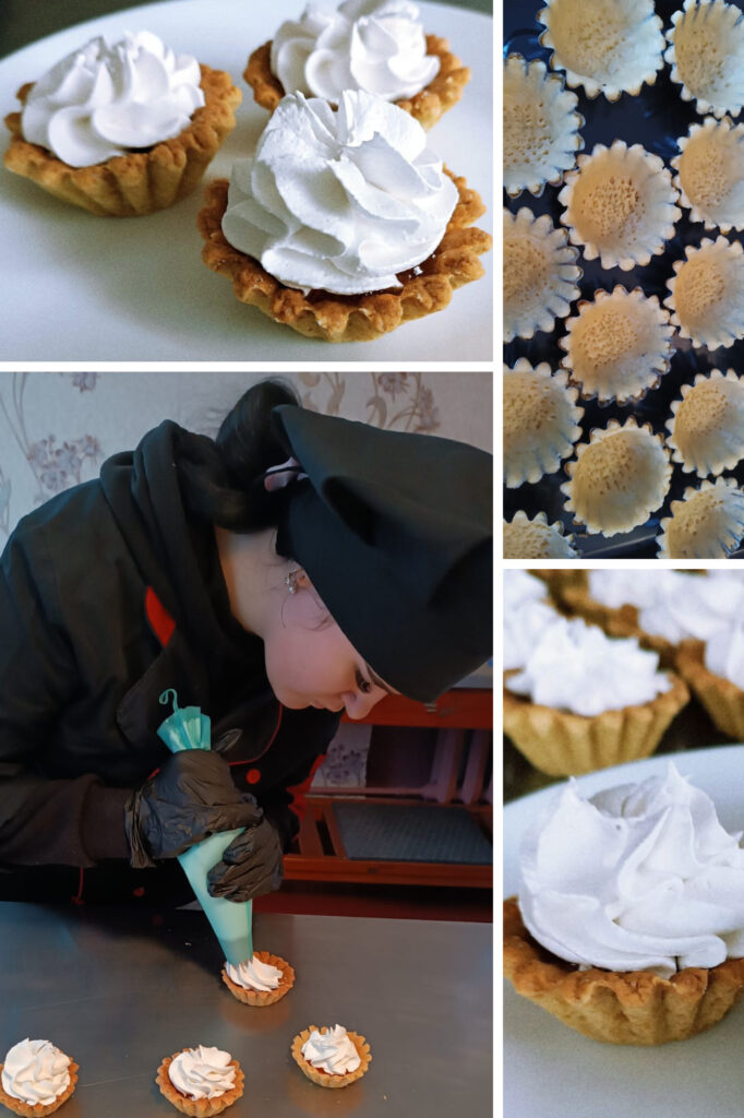 У групі 34 кухар; кондитер було проведено урок виробничого навчання за темою: “Приготування начинок”, Кошик з манговою начинкою та білковим кремом (майстер виробничого навчання Юлія Лабай)