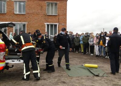 У вересні у закладах освіти усієї країни стартувала Всеукраїнська інформаційно-профілактична акція «День з поліцейським та рятувальником». Правоохоронці та працівники служби з надзвичайних ситуацій пояснюють здобувачам освіти правила безпечної поведінки на дорозі, алгоритм дій під час надзвичайних ситуацій, а також знайомлять зі спеціальною технікою та спецзасобами. До нашого ліцею завітали представники 17 ДПРЧ 4 ДПРЗ ГУ ДСНС України у Сумській області, які продемонстрували новий оперативно-рятувальний автомобіль, детально познайомили всіх присутніх із пожежно-рятувальними засобами. Дуже важливо, щоб діти розуміли, як поводитися в разі виникнення пожежі, знали основи пожежної безпеки та норми поведінки у надзвичайних ситуаціях. Саме такі знання рятують життя.