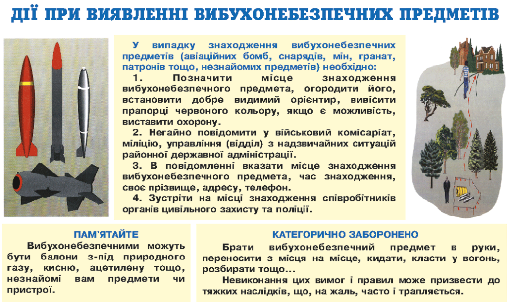 Дії населення при виявленні вибухонебезпечних предметів, сучасних боєприпасів та саморобних пристроїв, які використовуються в терористичних цілях: