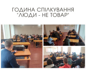 Заступником Директора ЗНВР Володимиром Сірим була проведена година спілкування «Люди – не товар». Під час заходу здобувачі освіти висловлювали свої думки про поширення проблеми торгівлі людьми серед молодих українців, бо ця проблема одна з найбільш глобальних та серйозних проблем людства. Водночас мільйони людей по всьому світі не усвідомлюють масштабів небезпеки та продовжують жити в полоні стереотипів і міфів. Як наслідок – тисячі з нас потрапляють в тенета сучасних работорговців. Під час години спілкування були розглянуті декілька найбільш поширених міфів про торгівлю людьми. Учні погодились, що одна з найжахливіших проблем XXI сторіччя – торгівля людьми, не лише має загрозливі масштаби та майже всесвітній розмах, а й успішно уживається в людській уяві з десятками міфів. Підлітки переглянули соціальні ролики «Вся правда про торгівлю людьми».