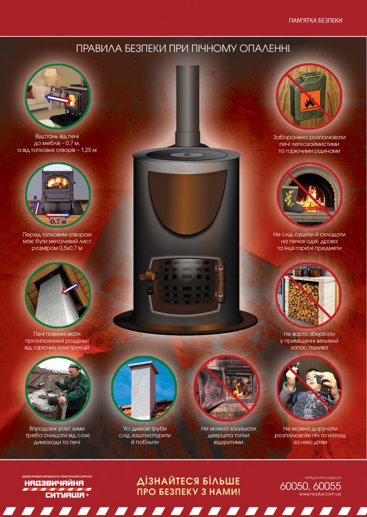 сушити й складати на печах одяг, дрова, інші горючі предмети та матеріали;
