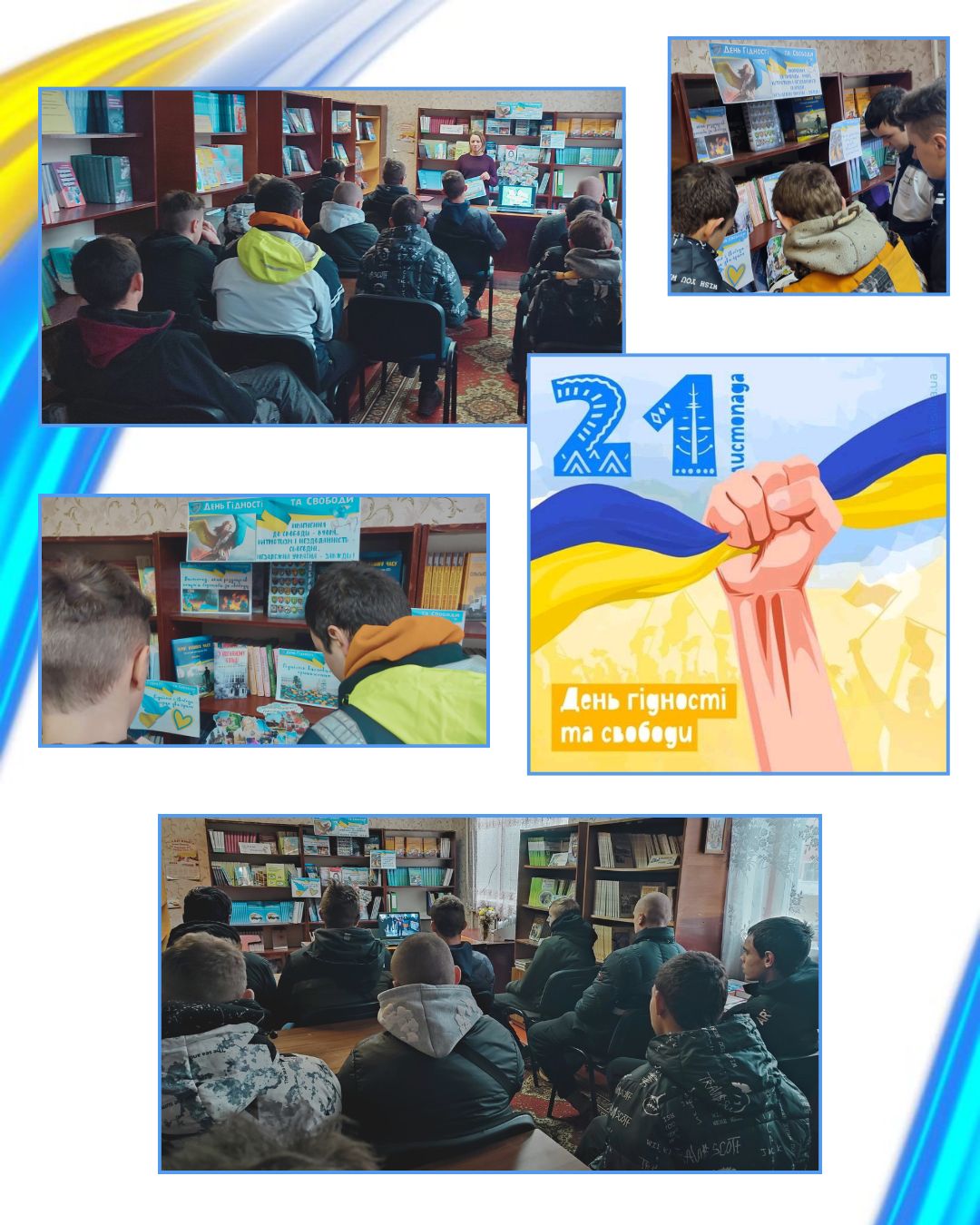 У бібліотеці ДПТНЗ «Реутинський ПАЛ» було проведено захід для здобувачів освіти та організовано книжкову виставку, присвячену учасникам Революції Гідності — людям, які віддали найцінніше, своє життя, заради того, щоб Україна та всі ми підвелися з колін. Щоб ми почали змінювати свою державу, а головне — змінювати себе, утверджуючи цінності свободи, єдності та національної гідності.