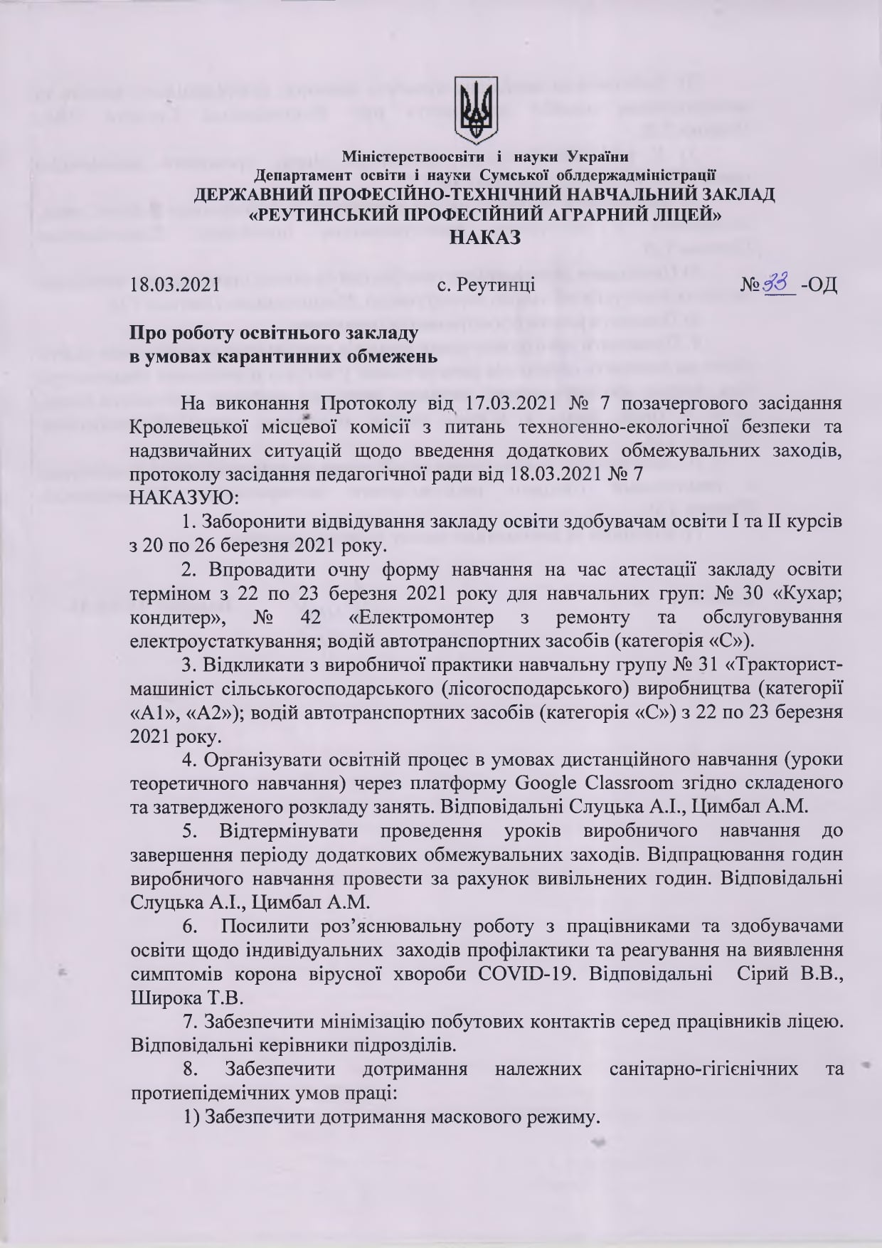 ПОРЯДОК РЕАГУВАННЯ НА ДОВЕДЕНІ ВИПАДКИ БУЛІНГУ В ЗАКЛАДІ ОСВІТИ