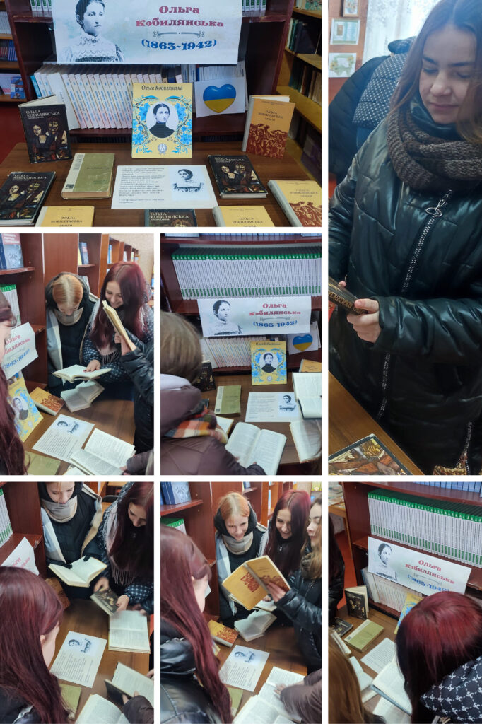 В бібліотеці навчального закладу представлено книжково – ілюстративну виставку “Усі мої думки тобі, народе вільний, і пісня серця, музика душі тобі!” здобувачі освіти дізналися, що іноді після смерті життя незвичайної людини перетворюється на легенду, і ця легенда живе серед людей цілі віки. З найдавніших давен серед українців існує повір’я: що частіше добром і шаною згадують людину, то довше вона живе. Так і творчість О.Кобилянської до цих пір залишається в серці кожного з нас.