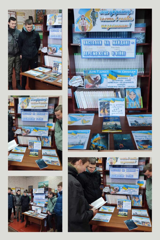 Рівно 10 років від початку Євромайдану, що переріс у Революцію Гідності. З нагоди пам’ятної дати в бібліотеці – організовано виставку «ЗАРЯДЖЕНІ ГІДНІСТЮ І ЖАГОЮ СВОБОДИ». Присутні мали можливість ознайомитись з подіями , які відбулись на Майдані Незалежності в Києві та багатьох містах України. Вшануймо сьогодні мужніх патріотів, які незламно стояли тоді на Майдані, а зараз виборюють нашу свободу та незалежність. Ми неодмінно переможемо російського агресора на полі бою, помстимося за кожного полеглого в цій десятирічній війні. Адже тільки завдяки їм ми вільні творити майбутнє у нашій незламній країні!
