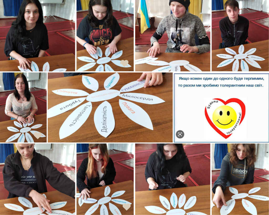 Вихователь Тетяна Єськова провела захід “Толерантність врятує світ”. Мета виховного заходу – допомогти учням розвинути якості толерантної особистості, методи виходу з конфліктних ситуацій, прийоми толерантної поведінки та спілкування.