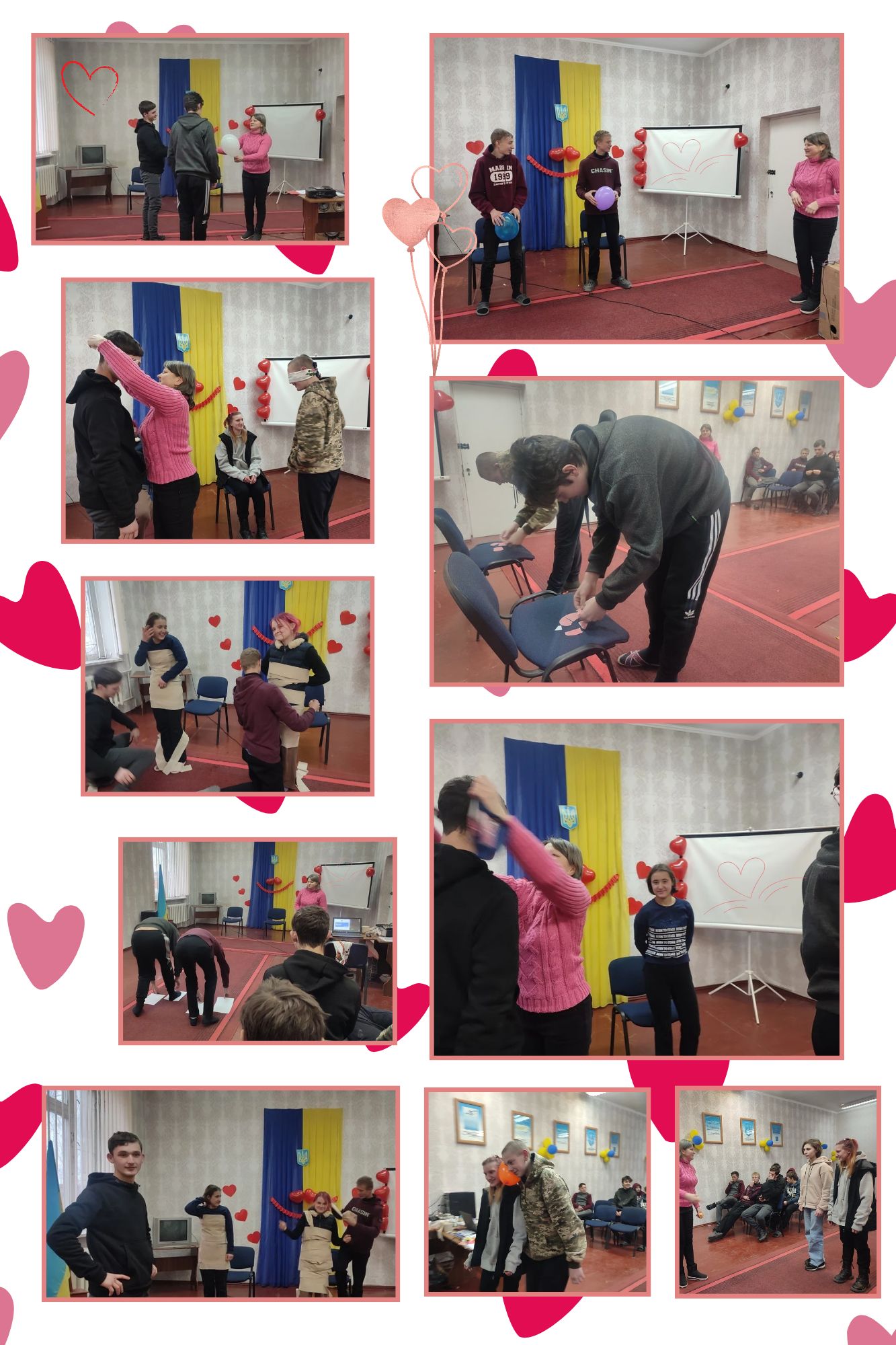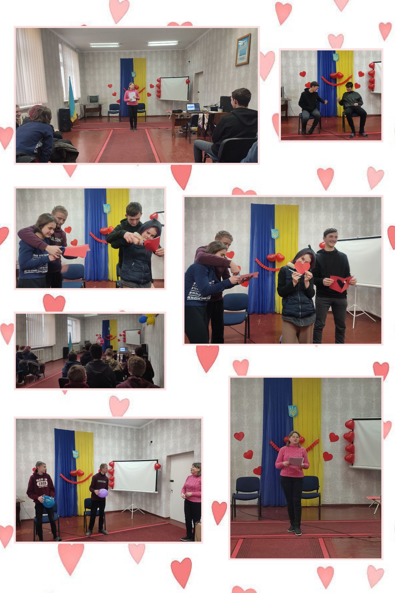 В нашому закладі вихователем Тетяною Єськовою та бібліотекарем Вікторією Слуцькою було проведено конкурсно – розважальну гру “На зустріч Купідону”. Захід розвинув творчі здібності учнів, їхнє мислення, пам’ять, увагу, мову. Всім присутнім подарував гарний настрій, підняв психологічно – емоційний стан.