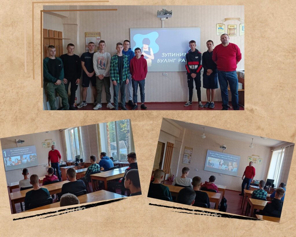 Викладачем спеціальних дисциплін Віталієм Костирко було проведено виховну годину з теми: “Зупинимо булінг разом”. Здобувачі освіти дізналися, що таке булінг, які є його прояви, як запобігти якщо ви потрапили в таку ситуацію, та яку відповідальність передбачено за цькування.