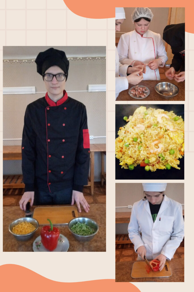 Виробниче навчання з теми: “Приготування страв з круп. Паелья з креветками”. (майстер виробничого навчання Ольга Карась) Бер 26, 2024 | Новини Виробниче навчання в групі 36 за професією “Кухар; кондитер” з теми: “Приготування страв з круп. Паелья з креветками”. (майстер виробничого навчання Ольга Карась)